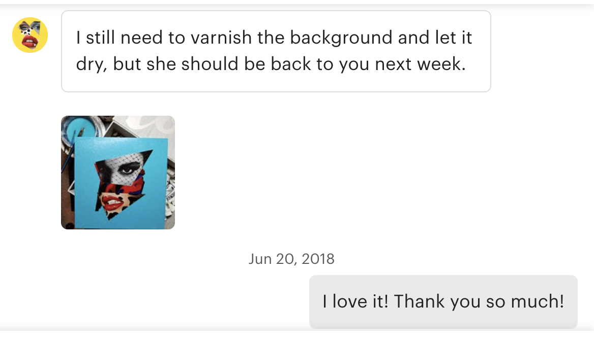 If there is one work, we regret buying in the collection it is this one! We bought this work directly from the artist’s Etsy store (a red flag) another was the artist had broken up with all of his galleries (probably because he felt they were underpricing his work). We did not do our research, and this was an impulse buy. We were concerned about the background being unfinished before we bought it, but did not think it would look so rough in person. When we got it looked so unfinished, that it bothered us enough to ask if he would be willing to let me send it back to paint the background. He was willing and we were grateful, but he more than over charged to do this. That fee would not have been bad if he had not overcharge for the work in the first place. I found out that the same work had be offered at LA LUZ DE JESUS GALLERY for $400 in 2016, We purchased it for double the price in 2018 and then paid another $200 + Plus shipping to have the work finished. We overpaid for this work by $600 + Shipping. It was an impulse purchase and it cost us. This is work is for sale because every time we look at it we feel ripped off.