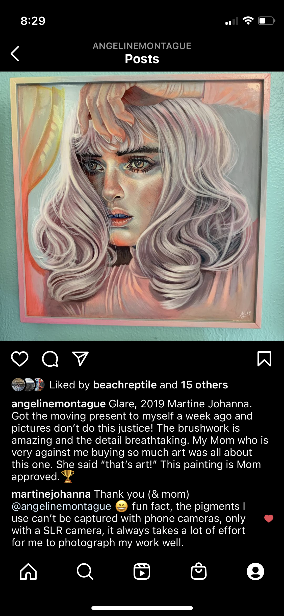 We have loved her work and followed Martine Johanna career for years. We happened to see that this work would be available for presale in there small work annual showcase show (We have subscribed to Thinkspace gallery’s mailing list for a few years, they represent a huge number of artist) They sent show preview notifications and the second emails with the pre-sale link to look at the artwork and then you have to email the gallery providing your shipping information and a list of what you want to purchase. It sucks has a process and many times no matter how you will never be the first to request for the more popular artists. This one worked out well.